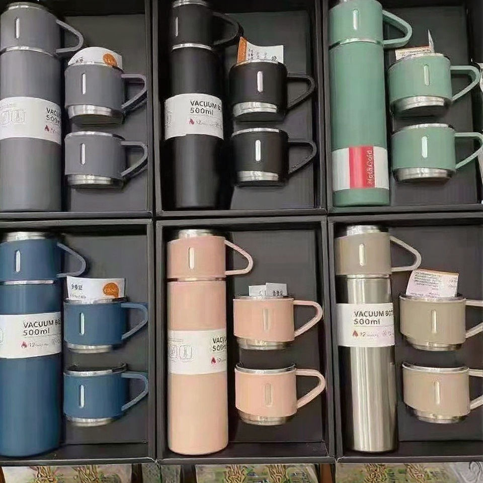 กระติกน้ำสุญญากาศสแตนเลสแบบพกพา 2 ชั้น พร้อมฝาปิดกันรั่ว 3 ขนาด ชุดของขวัญสำหรับกลับไปโรงเรียน