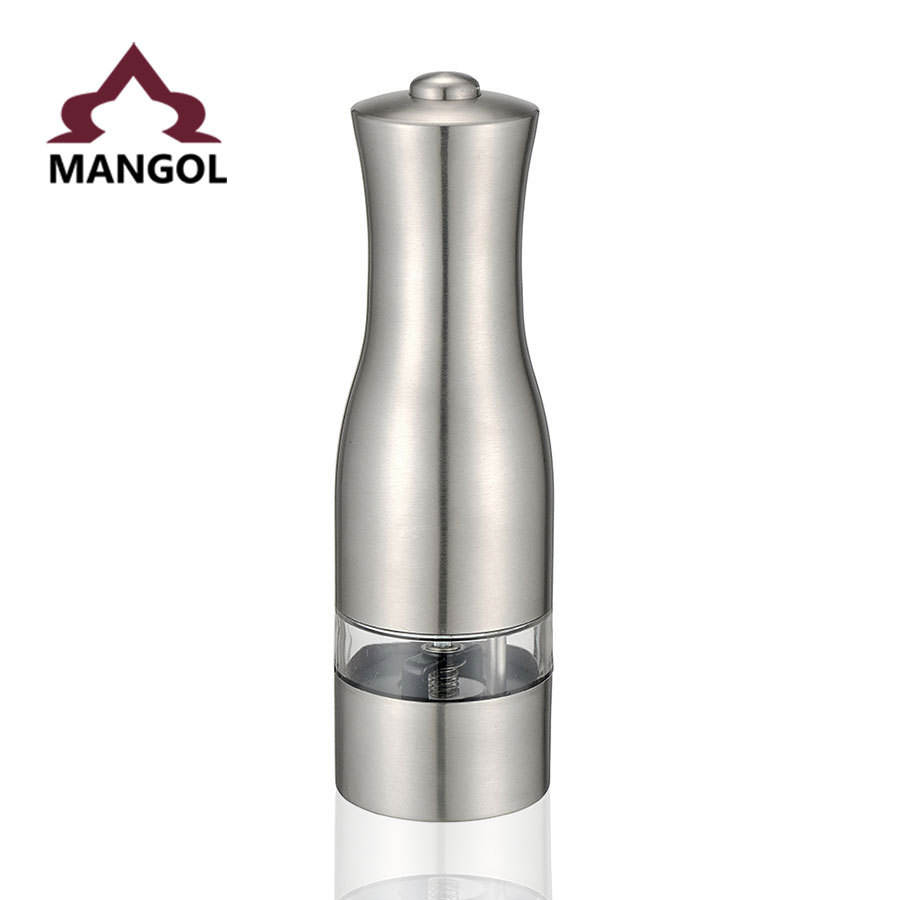 เครื่องบดพริกไทยไฟฟ้าสแตนเลสแบบพกพา Mg707a ใช้แบตเตอรี่ ปุ่มกดบด สำหรับใช้ในครัว