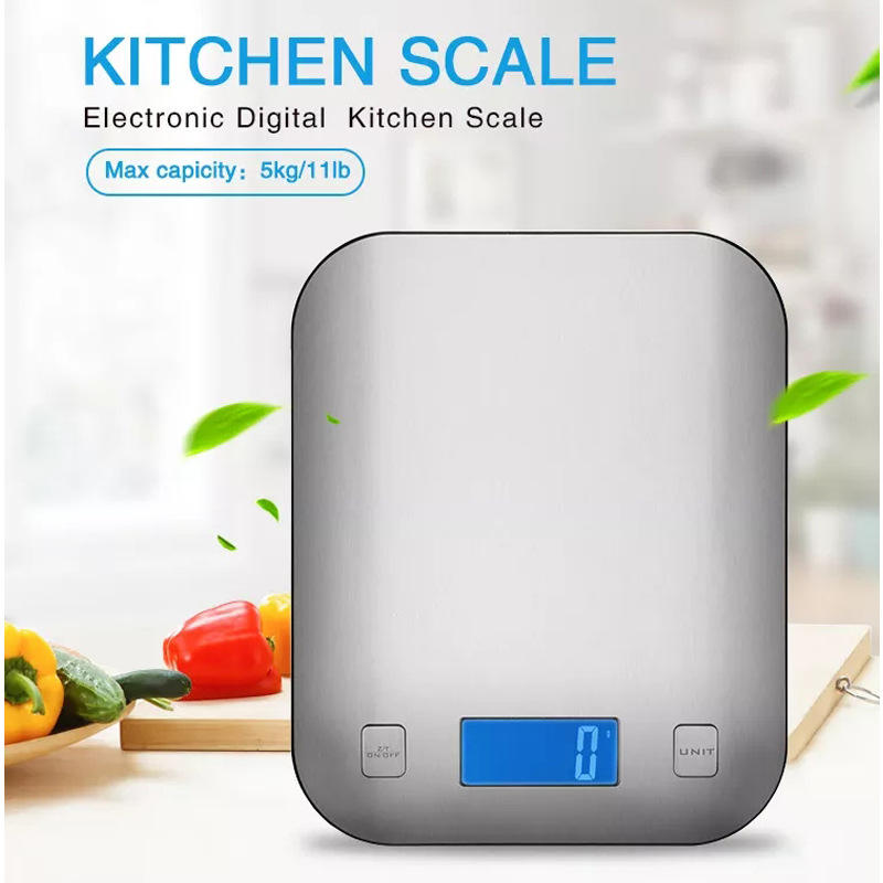 เครื่องชั่งครัวอิเล็กทรอนิกส์แบบพกพา สแตนเลส 5 กก./1 กรัม ความแม่นยำสูง สำหรับใช้ในบ้าน-สำหรับชั่งขนมปังและซาลาเปา