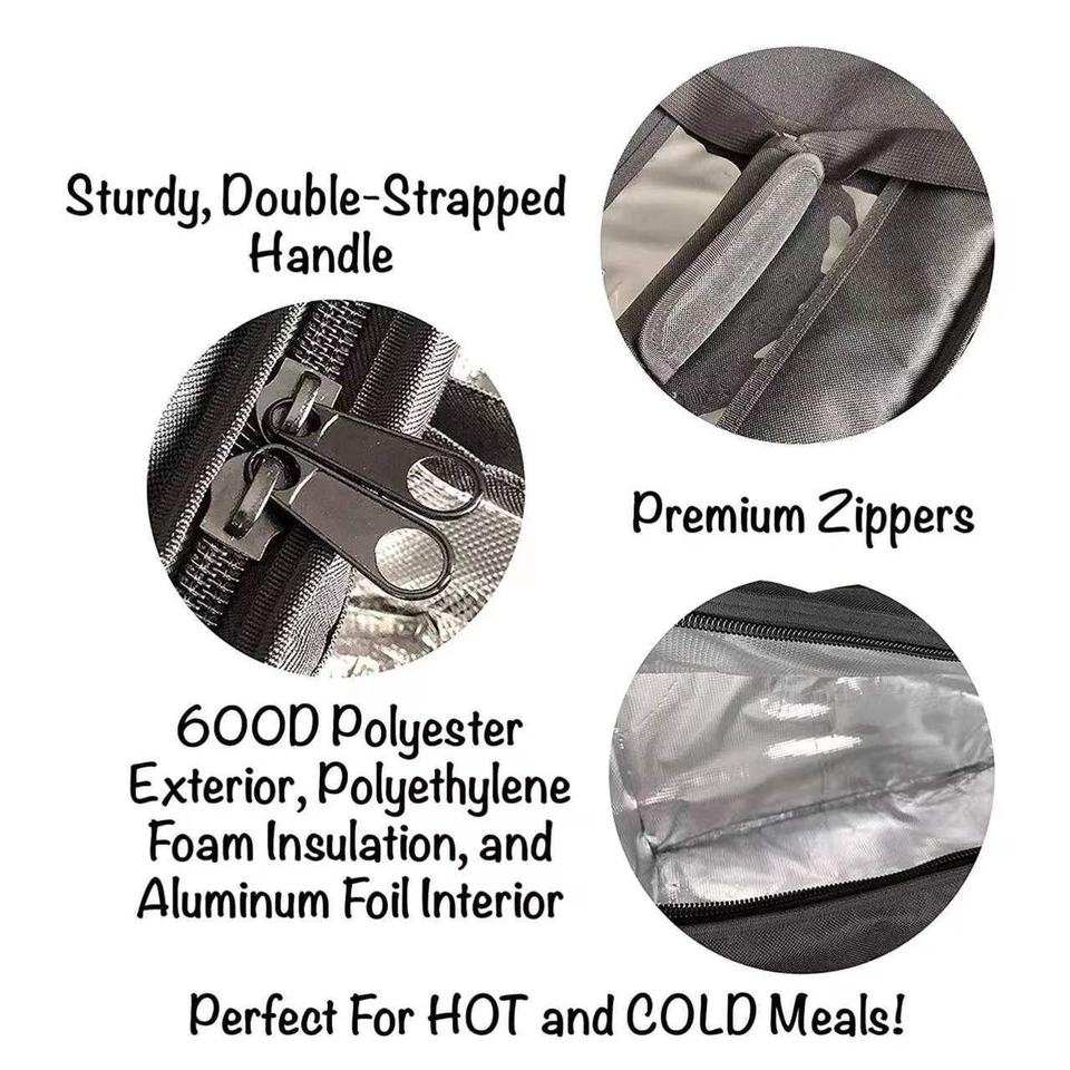 กระเป๋าระบายความร้อนแบบพกพาพร้อมที่ปิดซิปผ้าอ๊อกฟอร์ดไนล่อนโพลีเอสเตอร์อลูมิเนียมฟอยล์ที่จับสำหรับเก็บอาหารถุงน้ำแข็ง