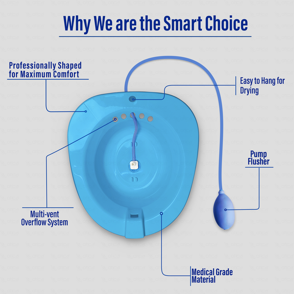โถแช่ทำความสะอาดส่วนบุคคลแบบพกพา OTICA ขนาด 38x33x10 ซม. สำหรับดูแลหลังคลอด บรรเทาอาการริดสีดวงทวาร ทำความสะอาดบริเวณทวารหนัก และฟื้นฟูสุขอนามัยช่องคลอด