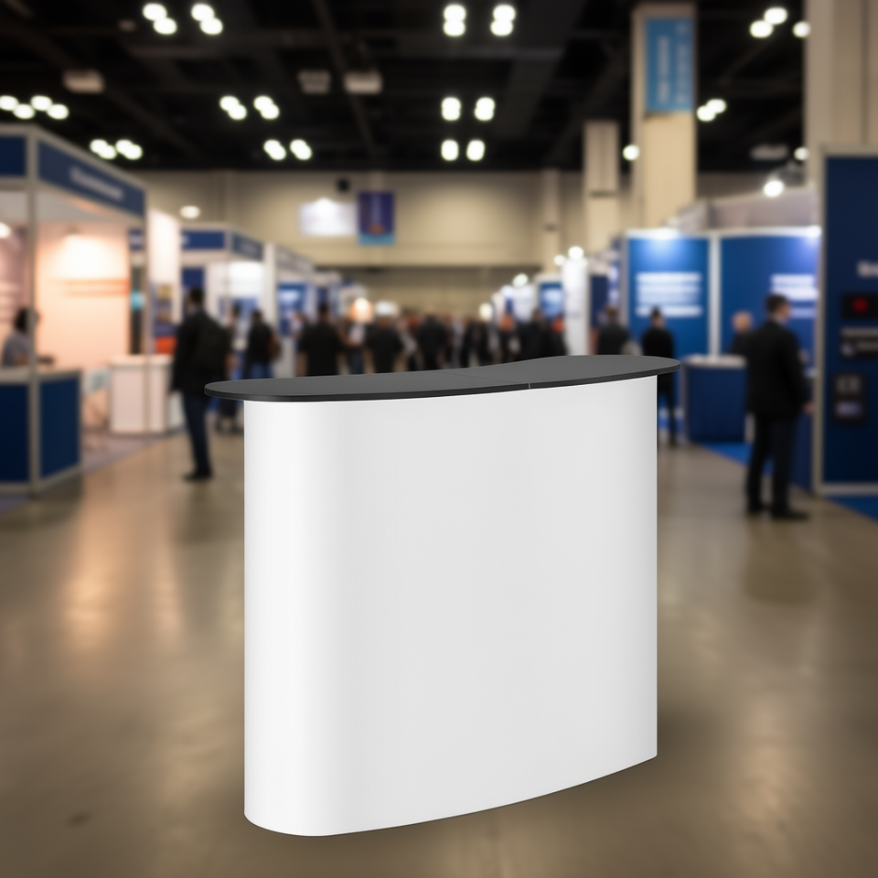แท่นแสดงสินค้าแบบพกพา ขนาด 51.18 x 18.31 x 37.4 นิ้ว พับเก็บได้ โครงอะลูมิเนียม วัสดุ PVC พร้อมกระเป๋าหิ้ว