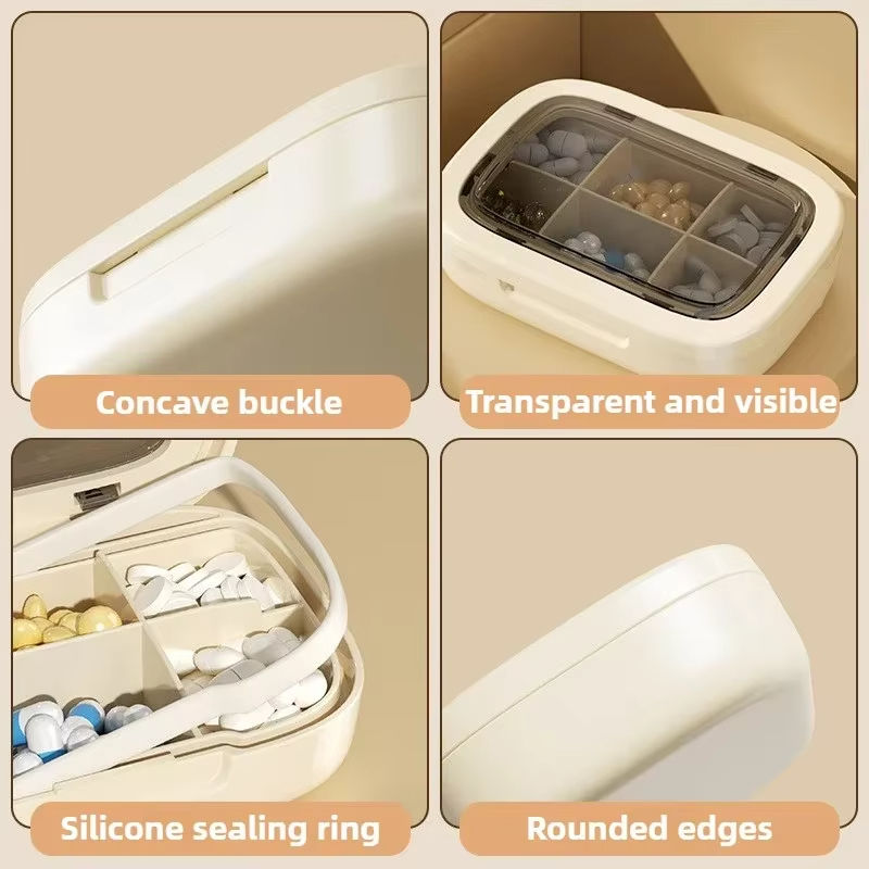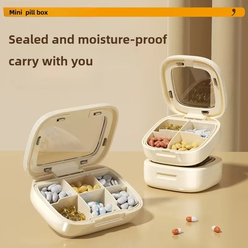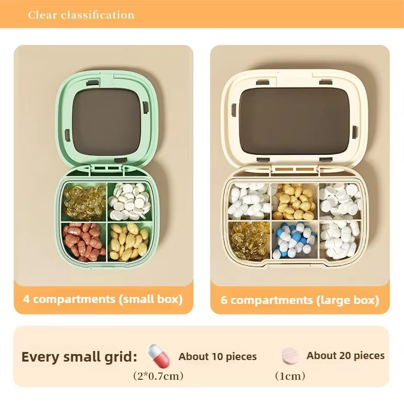 กล่องเก็บของกริด4/6แบบพกพากล่องยาสำหรับเดินทางสัปดาห์กล่องยาพลาสติกปิดสนิทกันความชื้นกล่องยาสำหรับเดินทาง