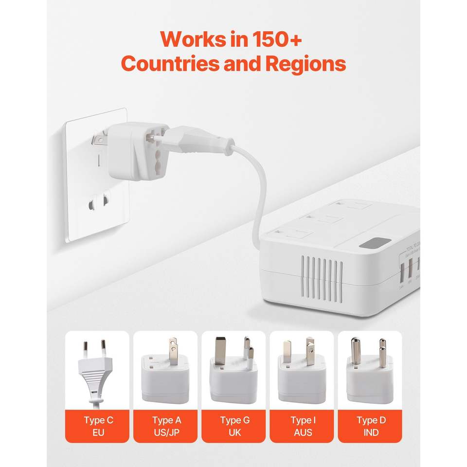 อะแดปเตอร์เดินทางแบบพกพาพร้อมพอร์ต USB-C 2พอร์ต220V ถึง110V ตัวแปลงแรงดันไฟฟ้าให้ลดลง