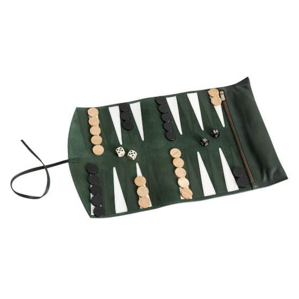 ชุดแบ็คแกมมอนพกพาแบบม้วนเก็บได้ ทำจากหนังกลับ พร้อมช่องเก็บของ ชุดเกมมืออาชีพ