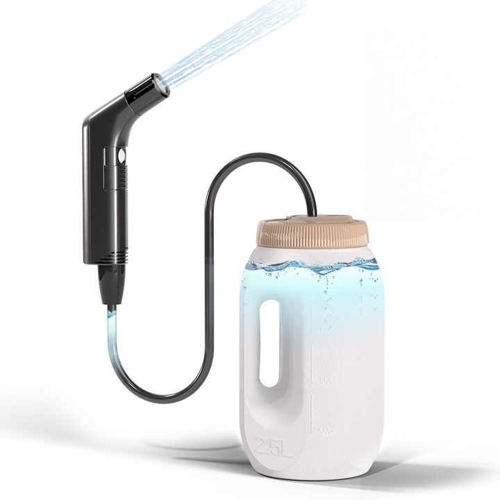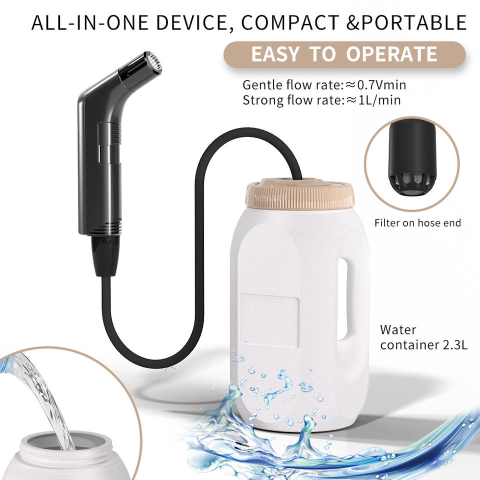 เครื่องพ่นโถสุขภัณฑ์พกพาสำหรับเดินทางพร้อมถังเก็บน้ำ2.5L แบตเตอรี่แบบชาร์จไฟได้ความเร็ว2ระดับท่อยาว1.2ม. สำหรับผู้ใหญ่/ทารก/สุขอนามัย