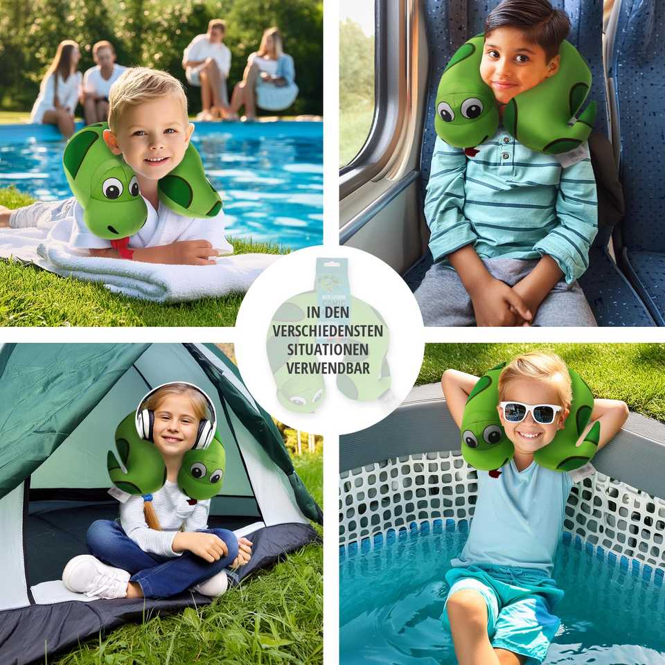 Portable Travel Neck Pillow U-Shape Memory Foam Filled Soft Cotton with Logo Print Comic Animal Snake Design for Car Use