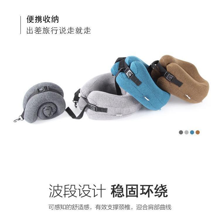 หมอนรองคอเมมโมรี่โฟมแบบพกพา รูปตัวยู สีฟ้าทะเลสาบ พร้อมซิปซ่อนและผ้าสองชั้นเพื่อรองรับต้นคอ
