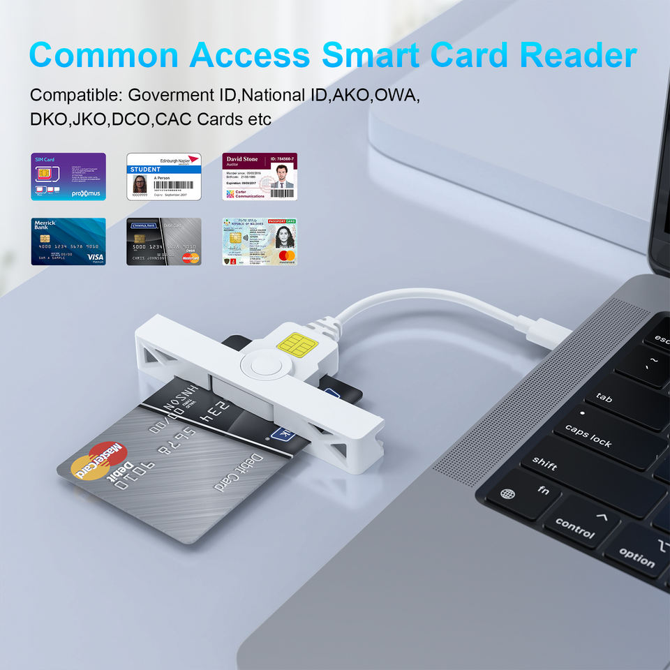เครื่องอ่านสมาร์ทการ์ดแบบพกพา USB C สำหรับการ์ด ISO7816 ID IC EMV CAC PIV เสียบแล้วใช้งานได้ทันทีบนพีซี/แล็ปท็อป ติดตั้งภายนอก