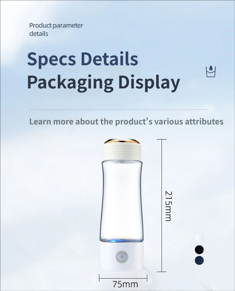 เครื่องผลิตน้ำไฮโดรเจนแบบพกพา ชาร์จผ่าน USB พร้อมขวดแก้ว ความจุ 400 มล. สำหรับใช้ในครัวเรือน น้ำร้อนและน้ำเย็น เทคโนโลยี SPE PEM