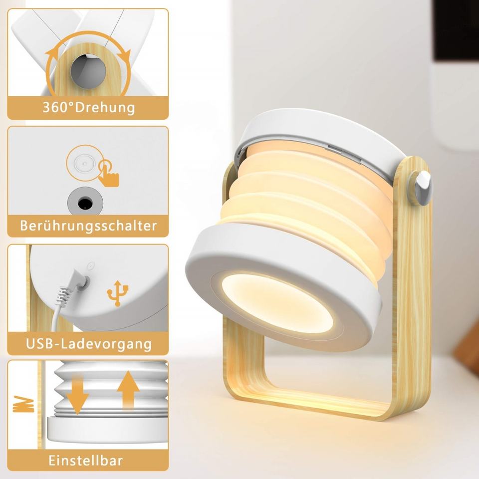 โคมไฟตั้งโต๊ะ LED พับได้ ปรับความสว่างได้ ใช้แบตเตอรี่ในตัว ชาร์จผ่าน USB แบบพกพา ไร้สาย เหมาะสำหรับตั้งแคมป์ บ้านอัจฉริยะ พร้อมปุ่มสัมผัส
