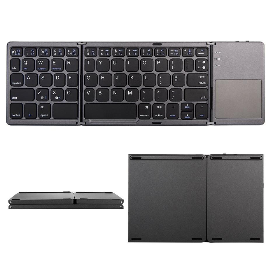 คีย์บอร์ดพับได้แบบพกพาบางเฉียบพร้อมแทร็คแพดทัชแพดสำหรับ iOS Android Windows OS Apple iPad แท็บเล็ต โทรศัพท์มือถือ