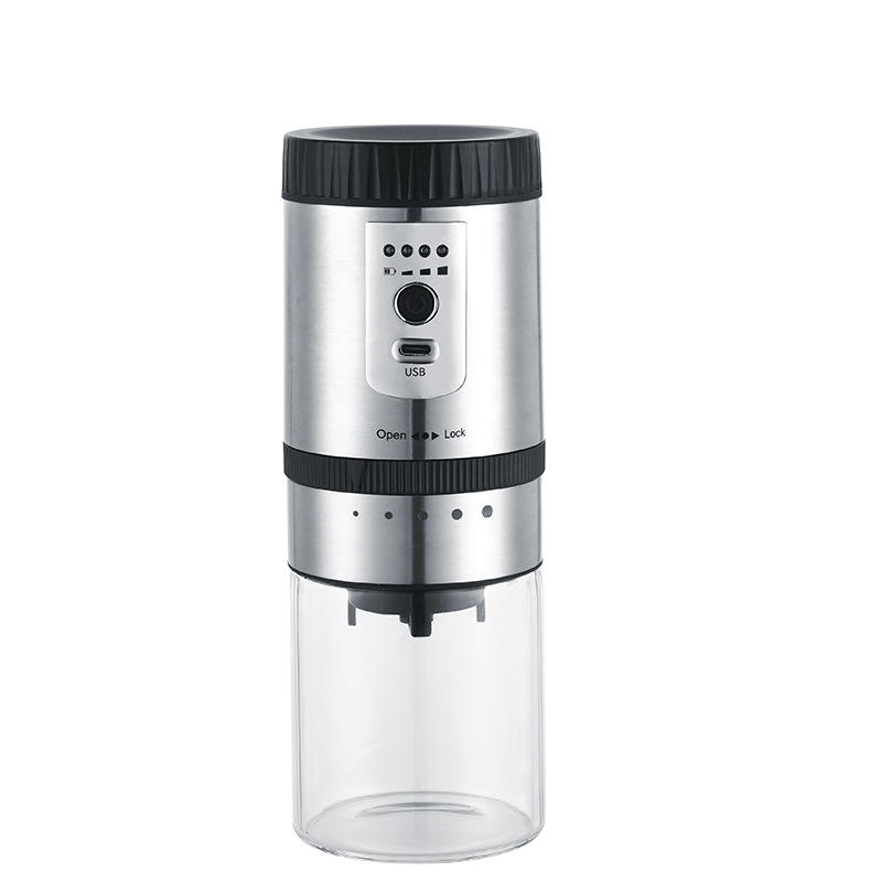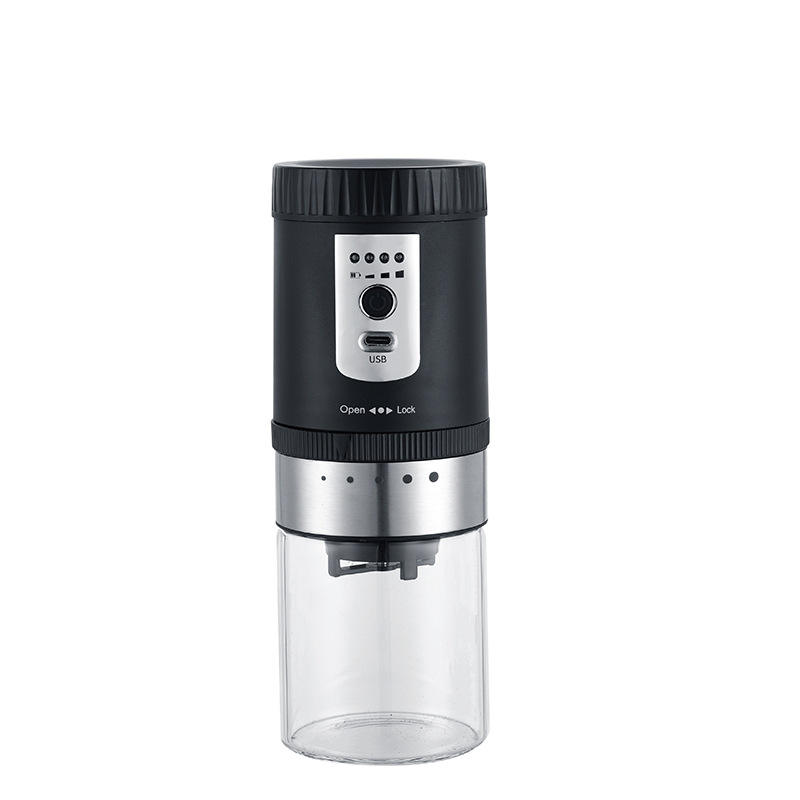 เครื่องบดกาแฟไฟฟ้าแบบพกพา USB สแตนเลสสตีลสีดำ ตัวเครื่องพลาสติก ชาร์จไฟได้ สำหรับใช้งานกลางแจ้ง
