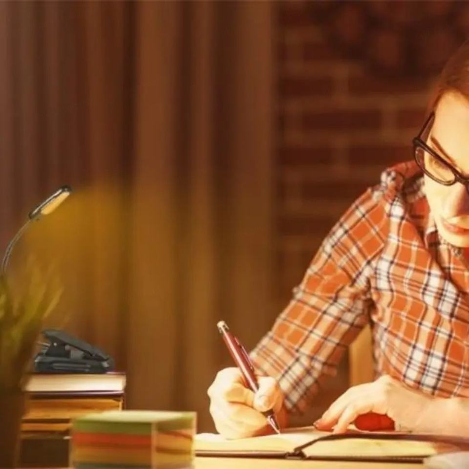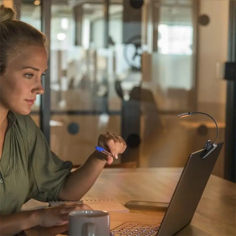 ไฟอ่านหนังสือแบบหนีบพกพา แสงวอร์มไวท์ 3 ระดับสีอุณหภูมิ 9 ระดับความสว่าง ชาร์จซ้ำได้ 9 LED ปรับได้ ยืดหยุ่นได้