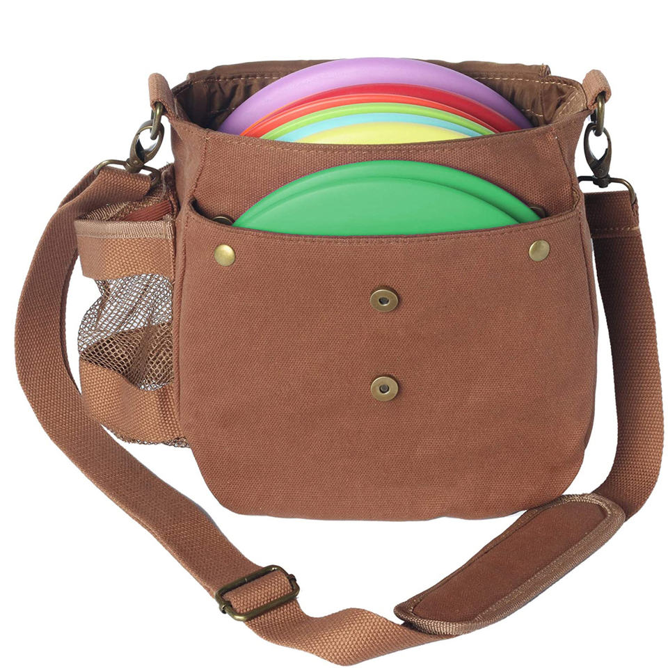 กระเป๋าใส่ดิสก์กอล์ฟแบบพกพา ทำจากผ้าแคนวาสเคลือบแว็กซ์ กระเป๋าสะพายไหล่ใส่ดิสก์กอล์ฟ ใส่ได้ 6-8 ดิสก์