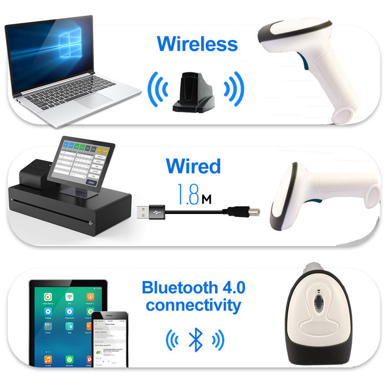 เครื่องสแกนบาร์โค้ดและคิวอาร์โค้ด2D 1D ไร้สายแบบพกพาพร้อมอินเตอร์เฟส USB สำหรับการจัดการสินค้าคงคลัง! มีสต็อก!