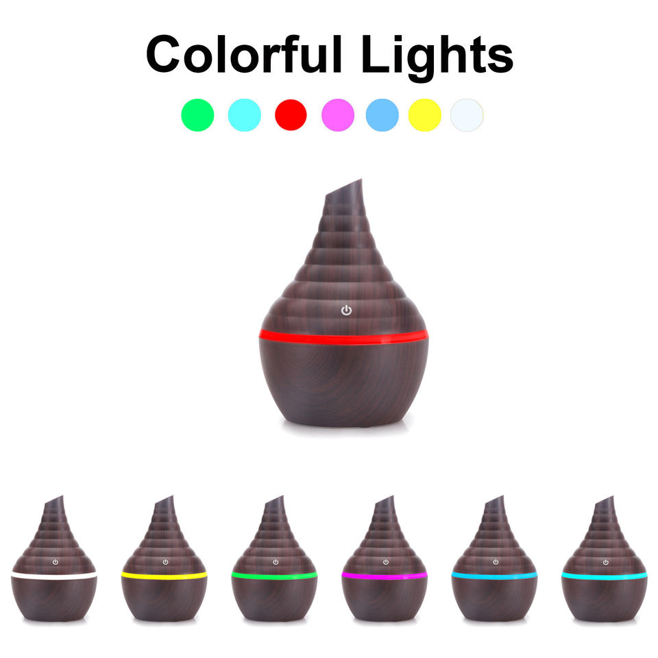 เครื่องกระจายกลิ่นอโรมาแบบพกพา ลายไม้ ขนาด 300 มล. ใช้พลังงานจาก USB พร้อมไฟ LED สำหรับใช้ในบ้านและเชิงพาณิชย์