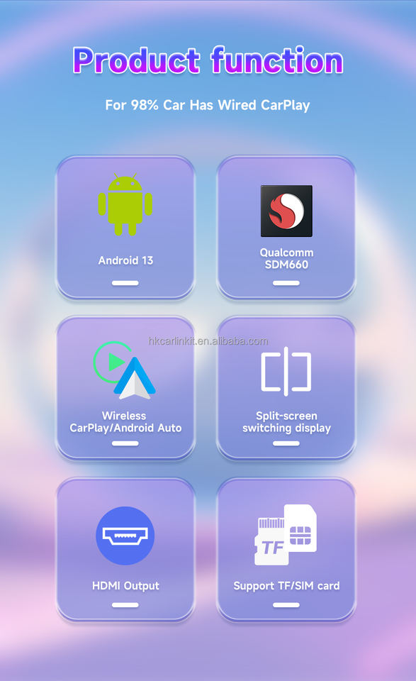ฟังก์ชัน:ระบบ Android เต็มรูปแบบ/Carplay ไร้สาย; Android auto