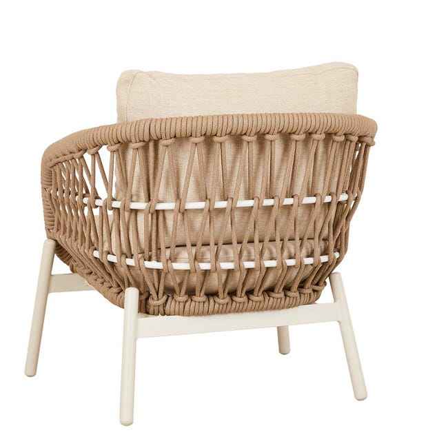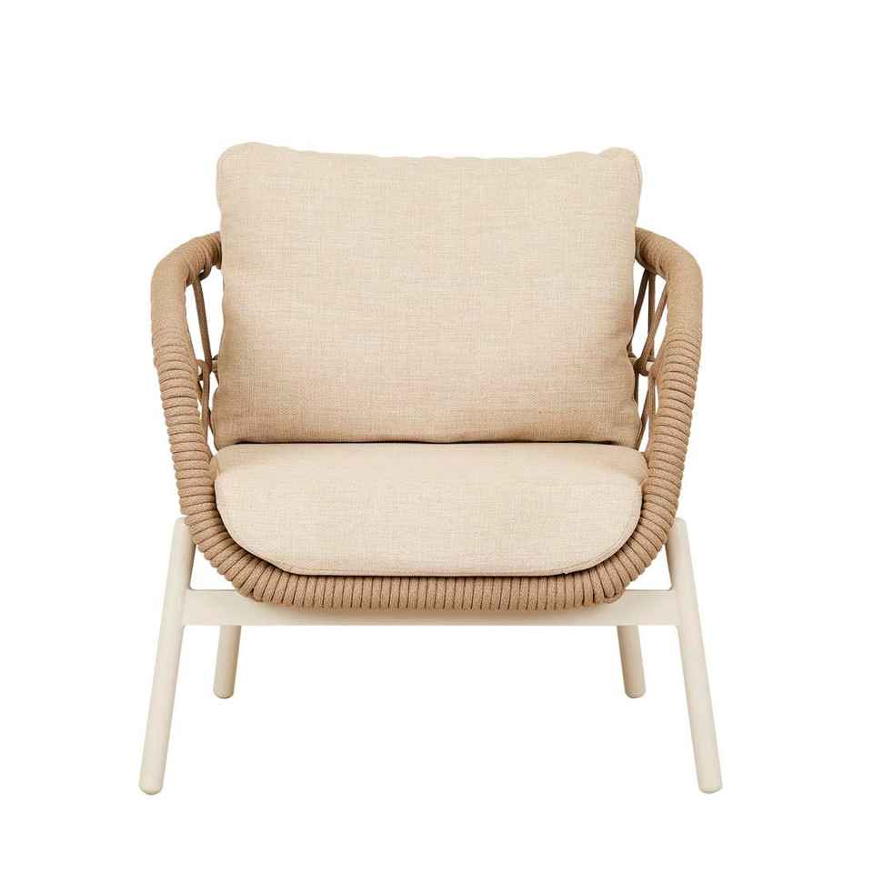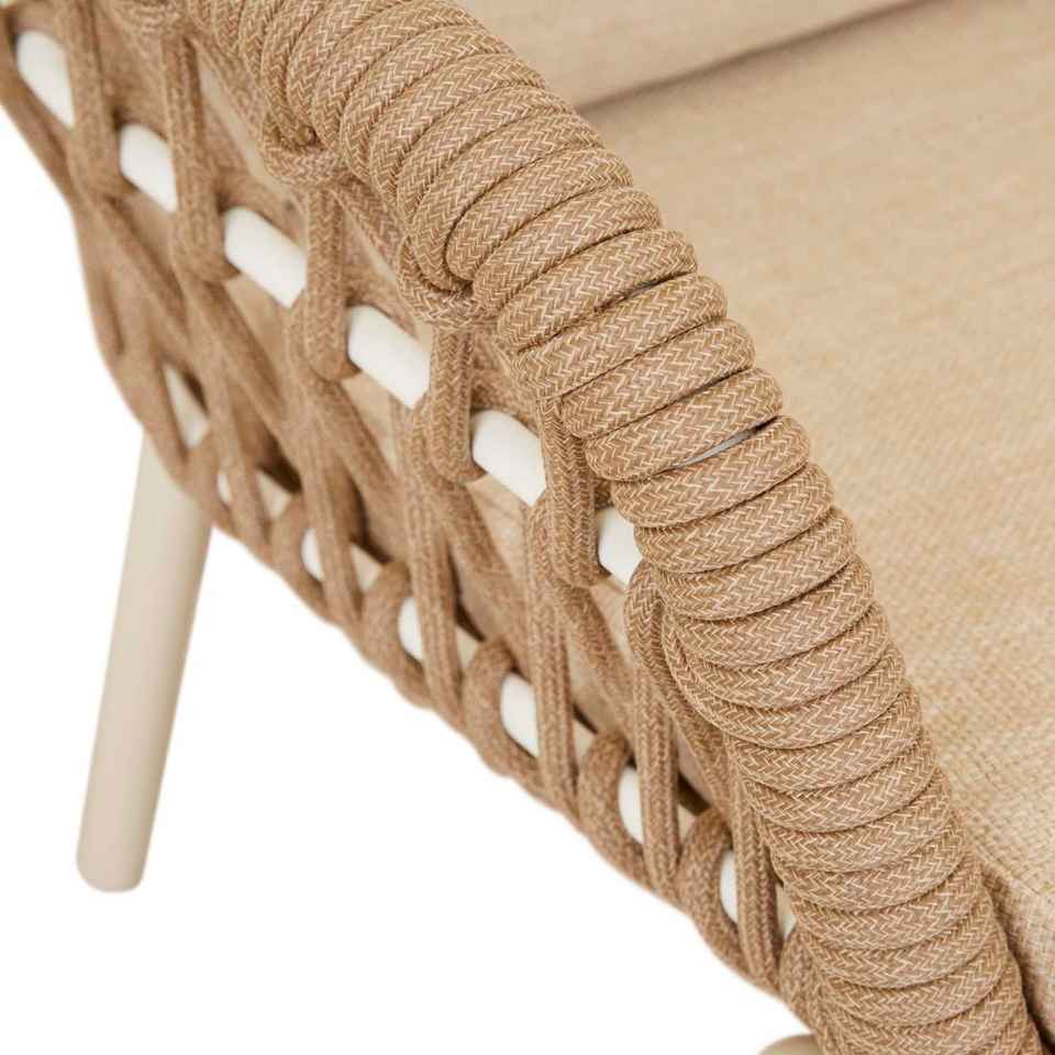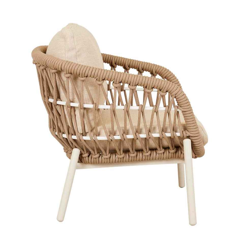เฟอร์นิเจอร์บ้านสไตล์โมเดิร์น Porto โครงเหล็กแข็งแรงพร้อมโซฟาเชือกถัก ขาไม้สัก และเบาะรองนั่ง