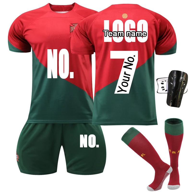 เสื้อฟุตบอลทีมชาติโปรตุเกส หมายเลข 7 คริสเตียโน โรนัลโด หมายเลข 8 บรูโน เฟอร์นันเดส หมายเลข 23 เฟลิกซ์ ชุดตาข่ายฤดูร้อน ฟุตบอลโลก