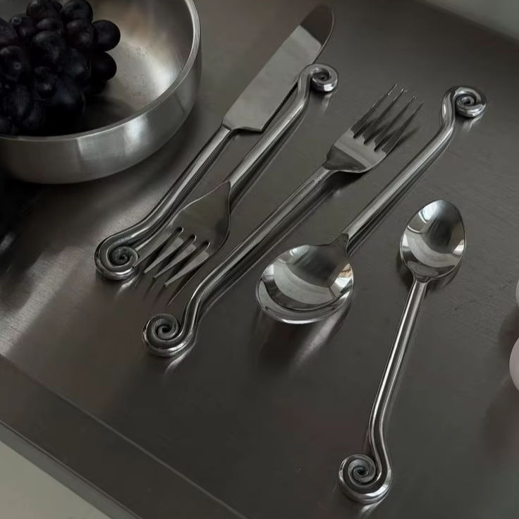 ชุดช้อนส้อมสเตนเลสสตีลขัดเงาแบบโปรตุเกส รุ่นล่าสุด คุณภาพสูง สำหรับร้านอาหารและโรงแรม