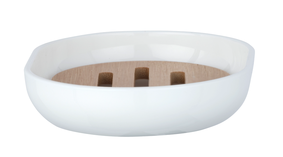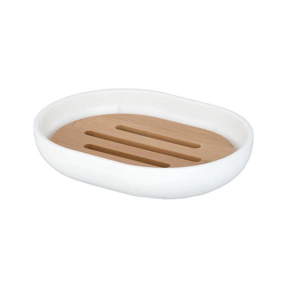 จานสบู่ Posa สีขาวและไม้ไผ่