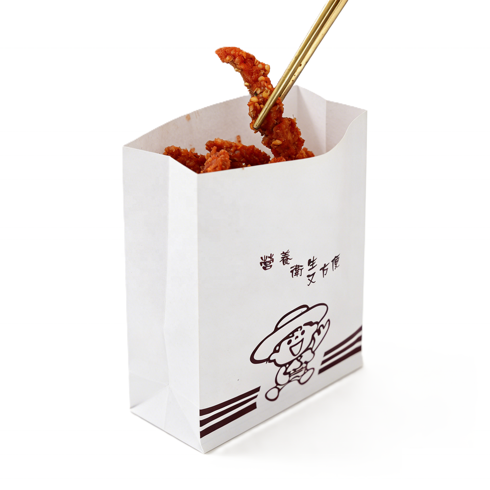 ถุงใส่เฟรนช์ฟรายส์แบบย่อยสลายได้ ผลิตจากกระดาษคราฟท์ธรรมชาติรีไซเคิลหลังการบริโภค พิมพ์ลายเฟล็กโซ ขนาดปรับแต่งได้