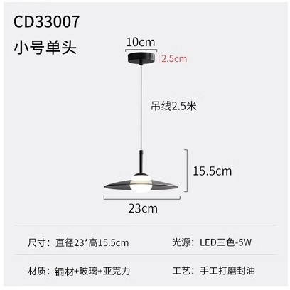 ทองเหลือง + แก้ว โคมไฟหัวเดี่ยวขนาดเล็ก/ไฟสามสี