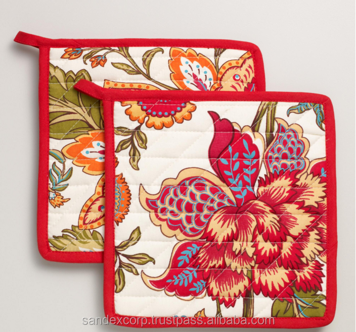 ผู้ถือหม้อ100% จากผ้าฝ้ายบริสุทธิ์พิมพ์ลายดอกไม้ผู้ผลิตในอินเดียขายส่ง