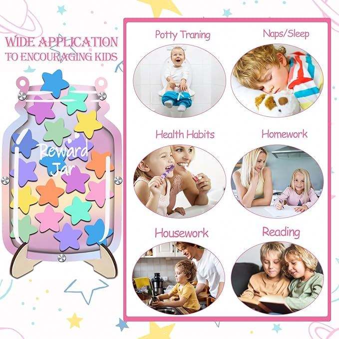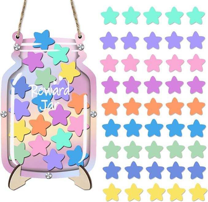 กระปุกใส่รางวัลสำหรับฝึกการขับถ่ายสำหรับเด็กเล็ก ชุดแผนภูมิรางวัลติดบอร์ดประกาศ แผนภูมิพฤติกรรมเชิงบวกสำหรับตกแต่งห้องเรียน