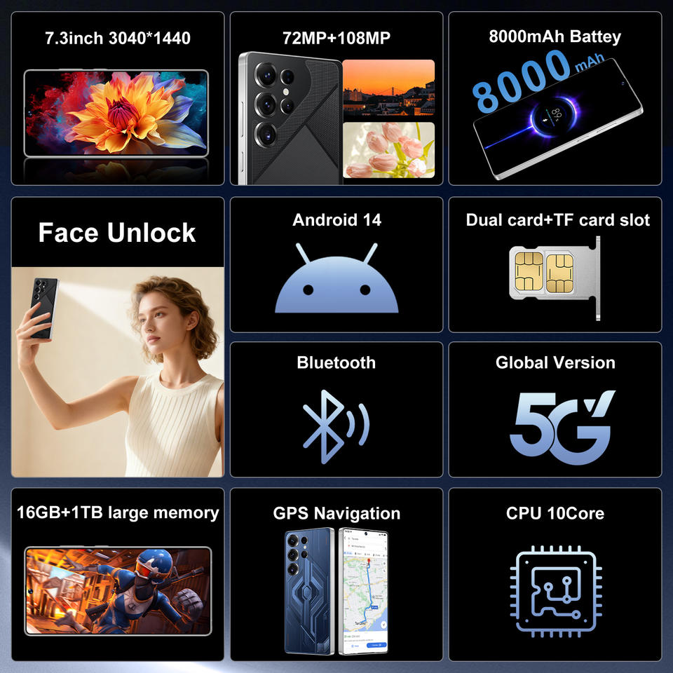 ลักษณะ:ซิมการ์ด คู่, กันน้ำ, กันกระแทก, การเล่นเกม, กล้องความงาม, ลายนิ้วมือ, การจดจำใบหน้า