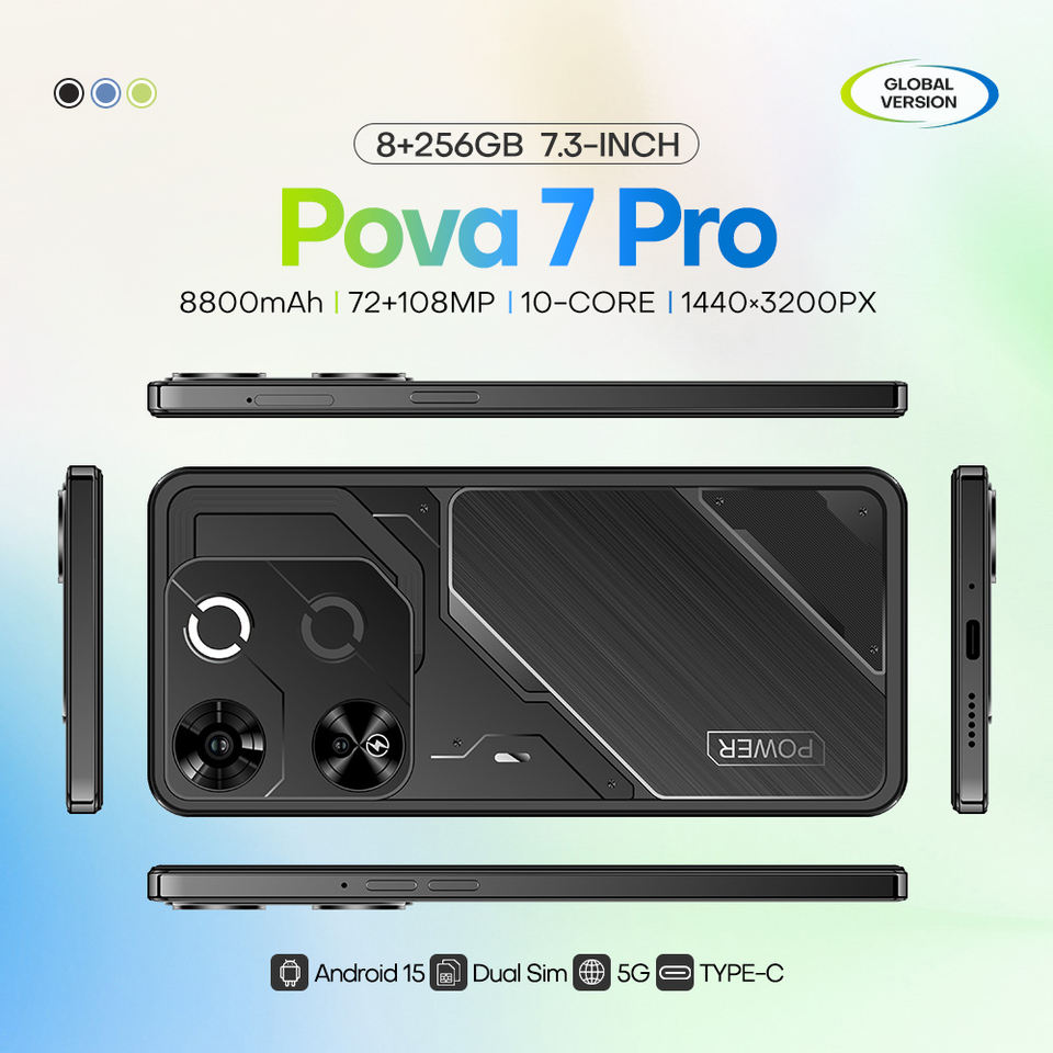 Pova7 Pro 7.3 "16GB + 1TB 5G Deca core โทรศัพท์8000mAh แบตเตอรี่ OLED 90Hz 72MP HD + กล้องหลัง108MP แอนดรอยด์14 LTE WiFi CDMA ใหม่