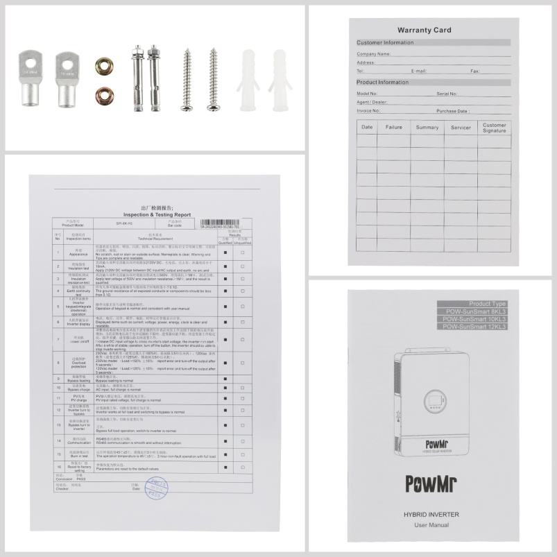 PowMr อินเวอร์เตอร์พลังงานแสงอาทิตย์ไฮบริด 5KW 8KW 12KW 10KW 48V อินเวอร์เตอร์พลังงานแสงอาทิตย์ไฮบริดคลื่นไซน์แท้แบบออนกริด/ออฟกริด 110V/230V/400V