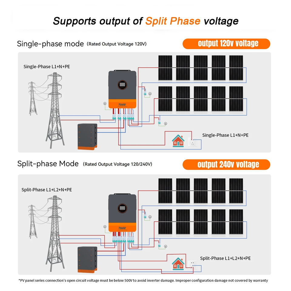 Powmr 6.5KW 120โวลต์/240VAC เดี่ยว/แยกเฟสไฮบริดอินเวอร์เตอร์48Vdc 140A สนับสนุนขนาน MPPT ไฮบริดอินเวอร์เตอร์พลังงานแสงอาทิตย์