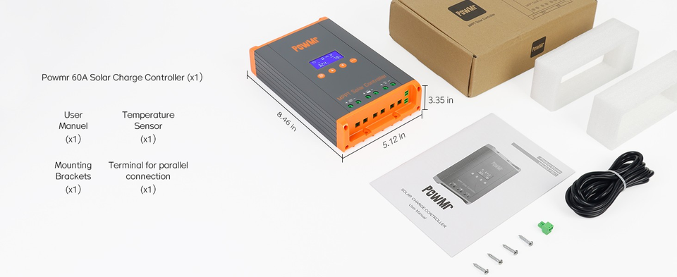 ตัวควบคุมการชาร์จพลังงานแสงอาทิตย์ PowMr 60Amp MPPT 12/24/36/48V อัตโนมัติ สามารถเชื่อมต่อแบบขนานได้ 12 เครื่อง