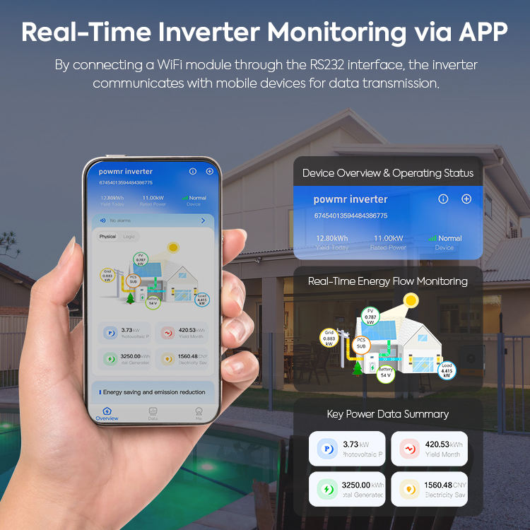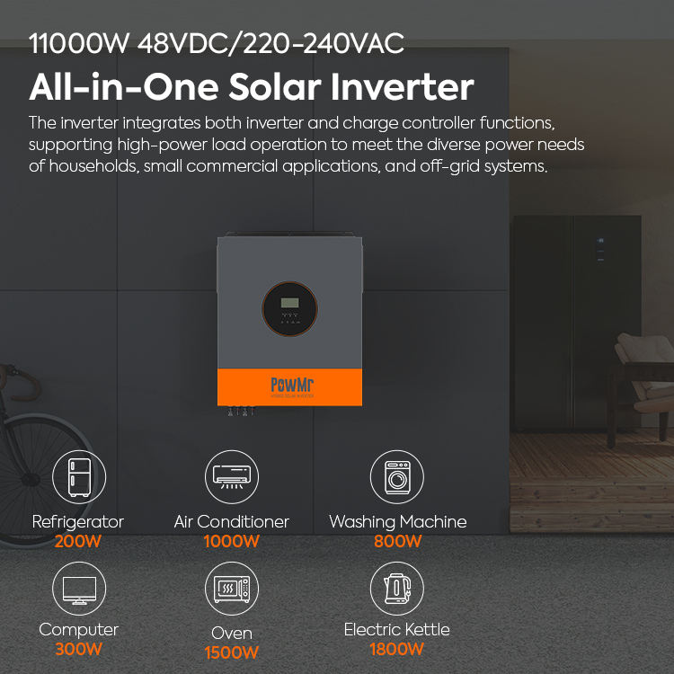 อินเวอร์เตอร์พลังงานแสงอาทิตย์แบบคู่ รองรับการใช้งานแบบขนานเฟสเดียว/สามเฟส กำลังไฟ 11KW 220Vac 48Vdc รองรับพลังงานแสงอาทิตย์สูงสุด 7.5KW มีสินค้าในสต็อก