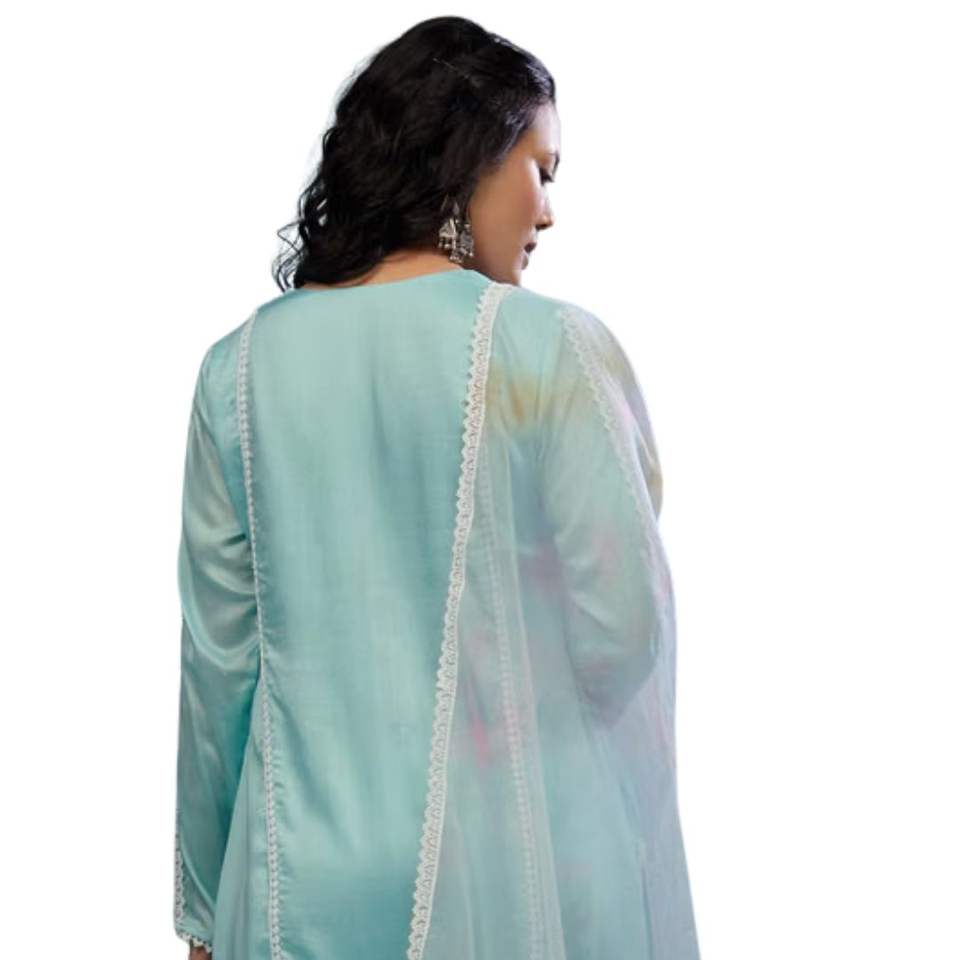 ชุดสูทพาลาซโซสีฝุ่นสีฟ้าผ้าวิสคอสเสื้อผ้าพื้นเมืองสำหรับผู้หญิงเสื้อผ้างานปาร์ตี้ออกแบบได้ตามต้องการ