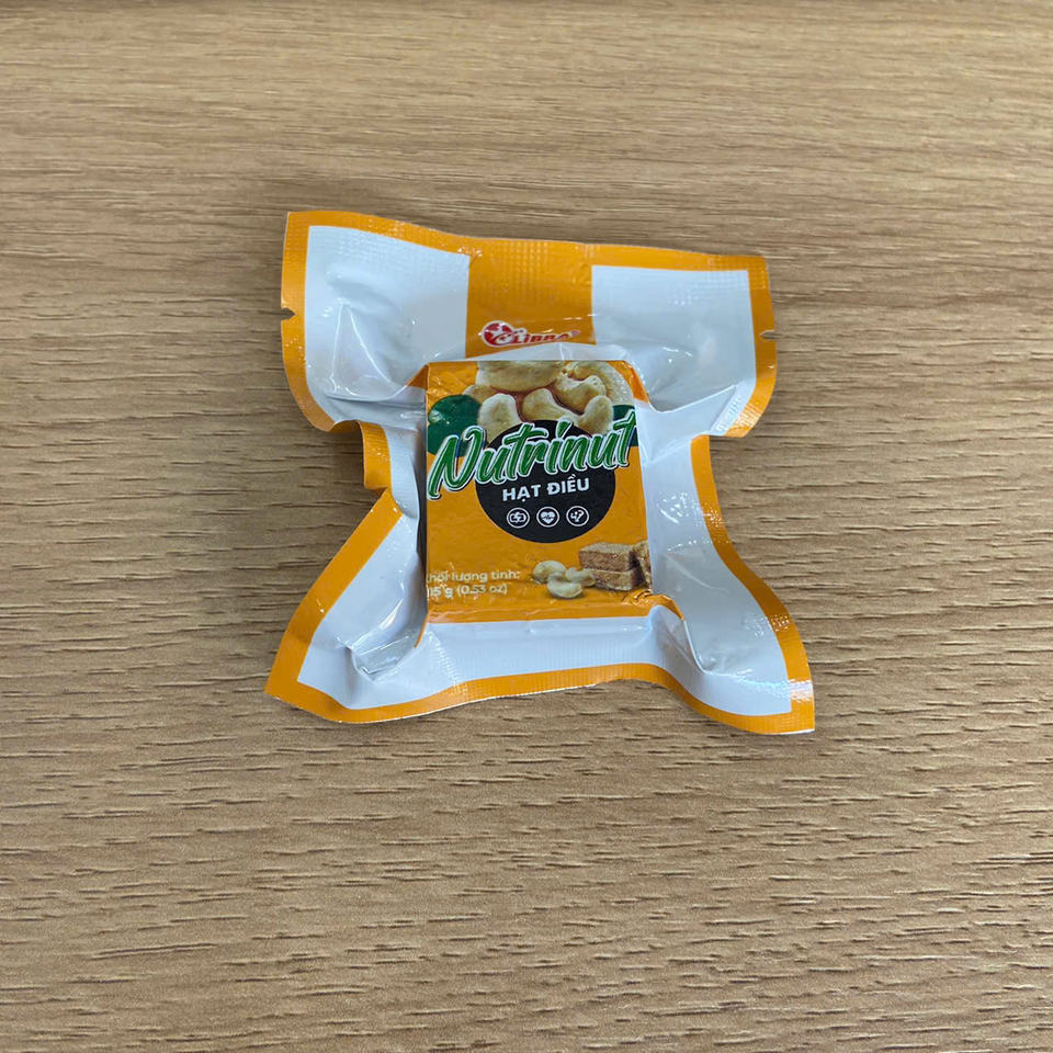 แป้งสาลี, น้ำมันปาล์ม, น้ำตาล, เม็ดมะม่วงหิมพานต์,...ส่วนผสม