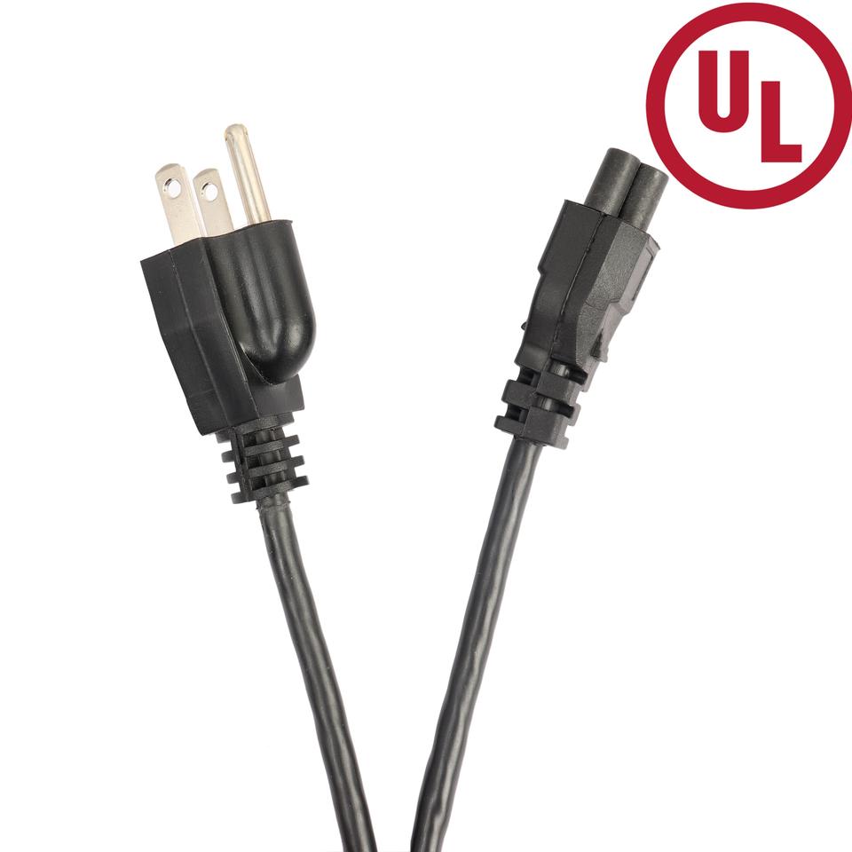 สายต่อพ่วงสำหรับแล็ปท็อปที่ผ่านการรับรอง UL มาตรฐานสหรัฐอเมริกา/แคนาดา/ญี่ปุ่นได้รับการอนุมัติพร้อมขั้วต่อ C5 5-15P ประเภทปลายหัวปลั๊ก IEC ตัวเมีย