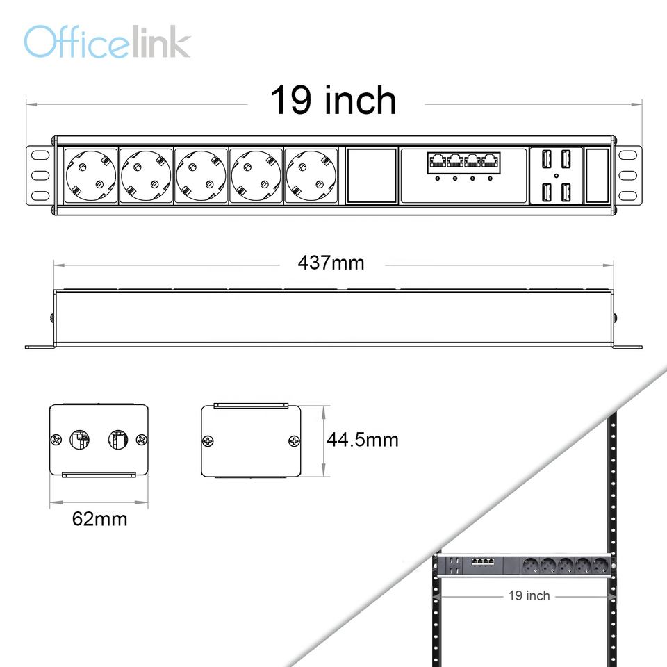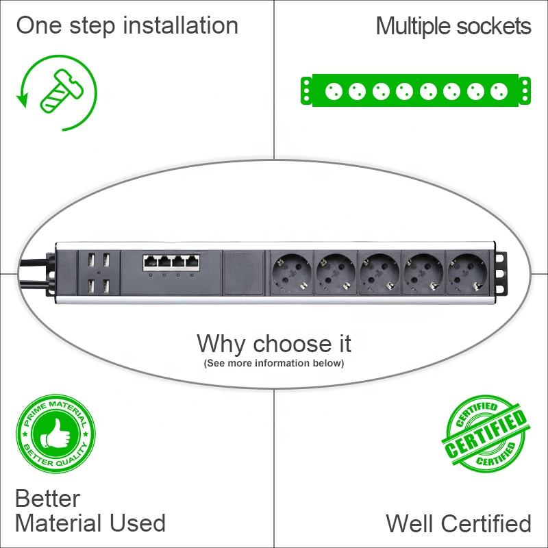 การกำหนดค่า:5ร้านเยอรมัน + 4 RJ 45 jick + 4ข้อมูล USB + ปลั๊ก + สายเคเบิล