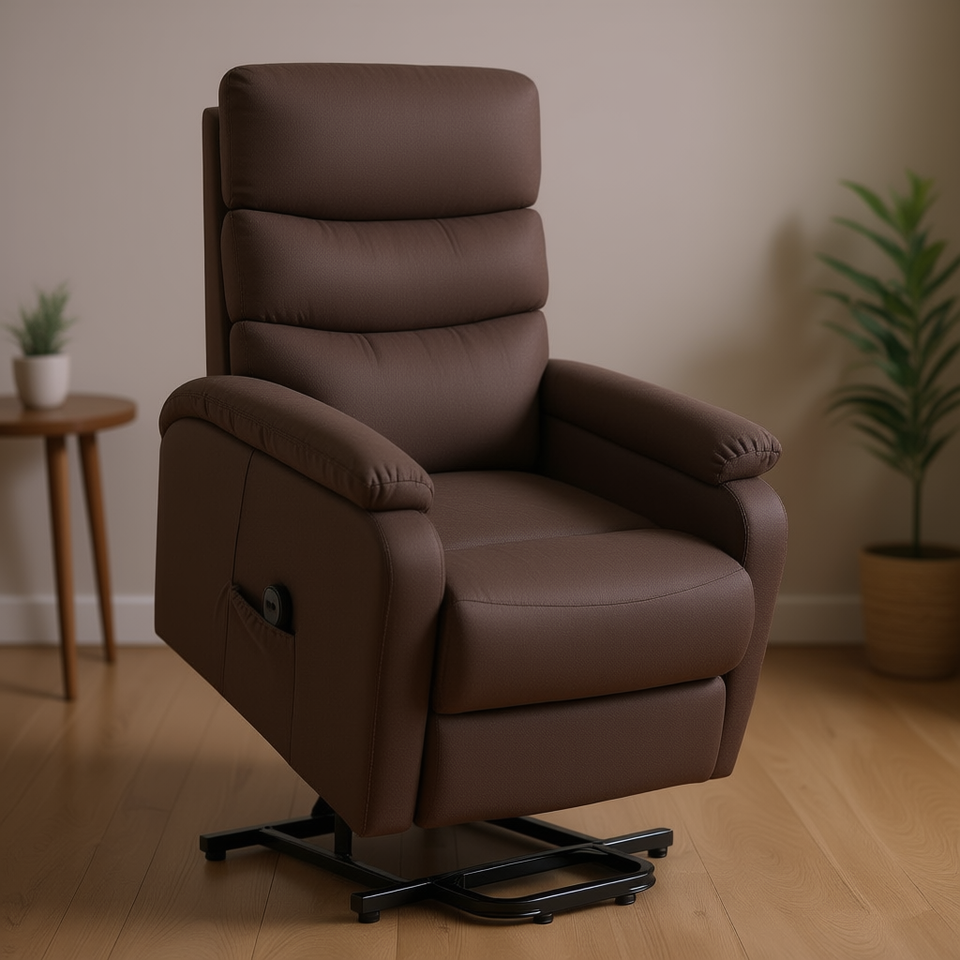 เก้าอี้นวดปรับเอนไฟฟ้าหุ้มหนัง PU สีน้ำตาล พร้อมรีโมทคอนโทรล สำหรับห้องนั่งเล่น