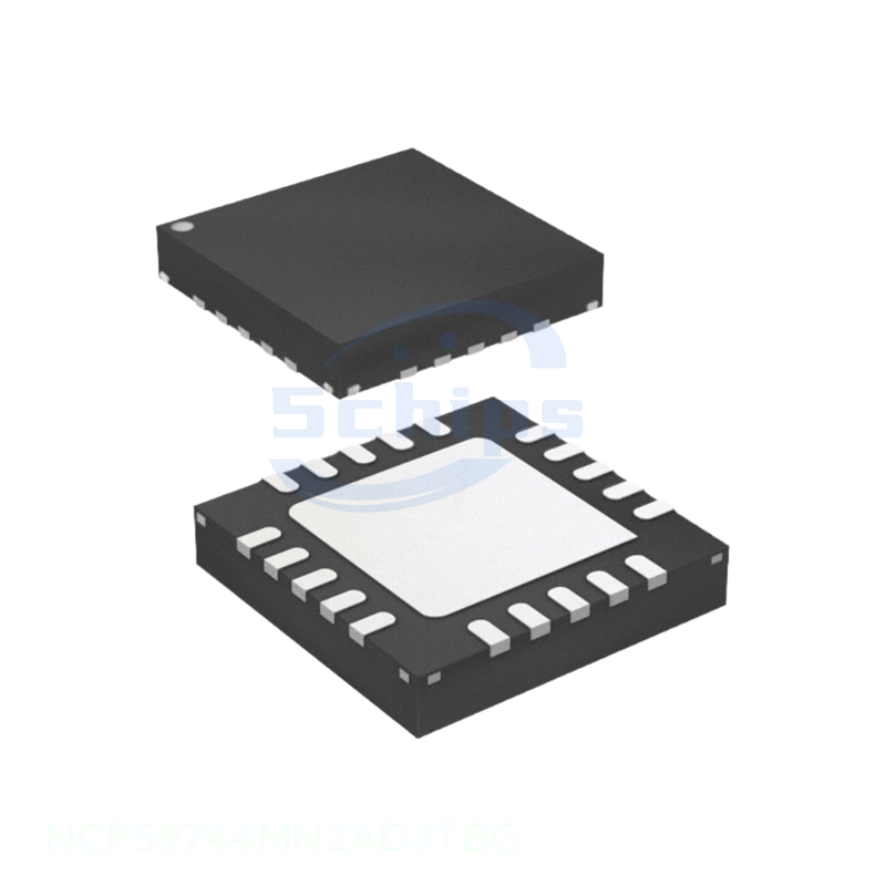 วงจรรวม (PMIC) 20 VQFN แบบมีพื้นผิวเปิดเผย ไอซีควบคุมแรงดันไฟฟ้าแบบเส้นตรง ปรับค่าได้ 3A 20QFN ของแท้ รุ่น NCP59744MN2ADJTBG