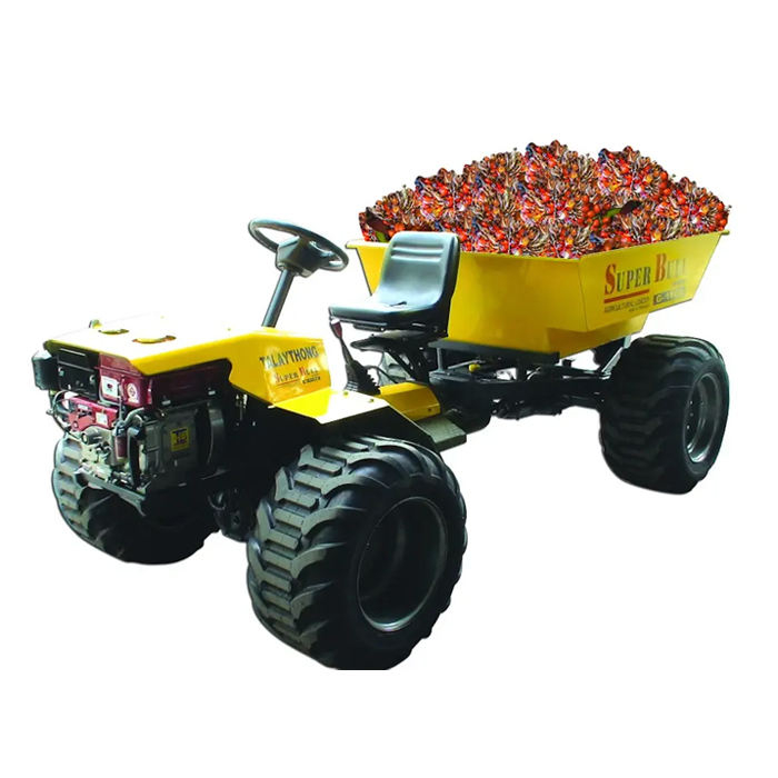 รถแทรกเตอร์น้ำมันปาล์ม 4*4 ขับเคลื่อนสี่ล้อ พร้อมที่ตักและที่เทอเนกประสงค์สำหรับการเก็บเกี่ยวในฟาร์ม