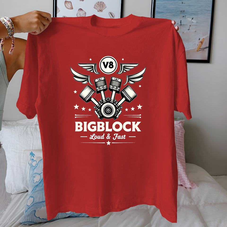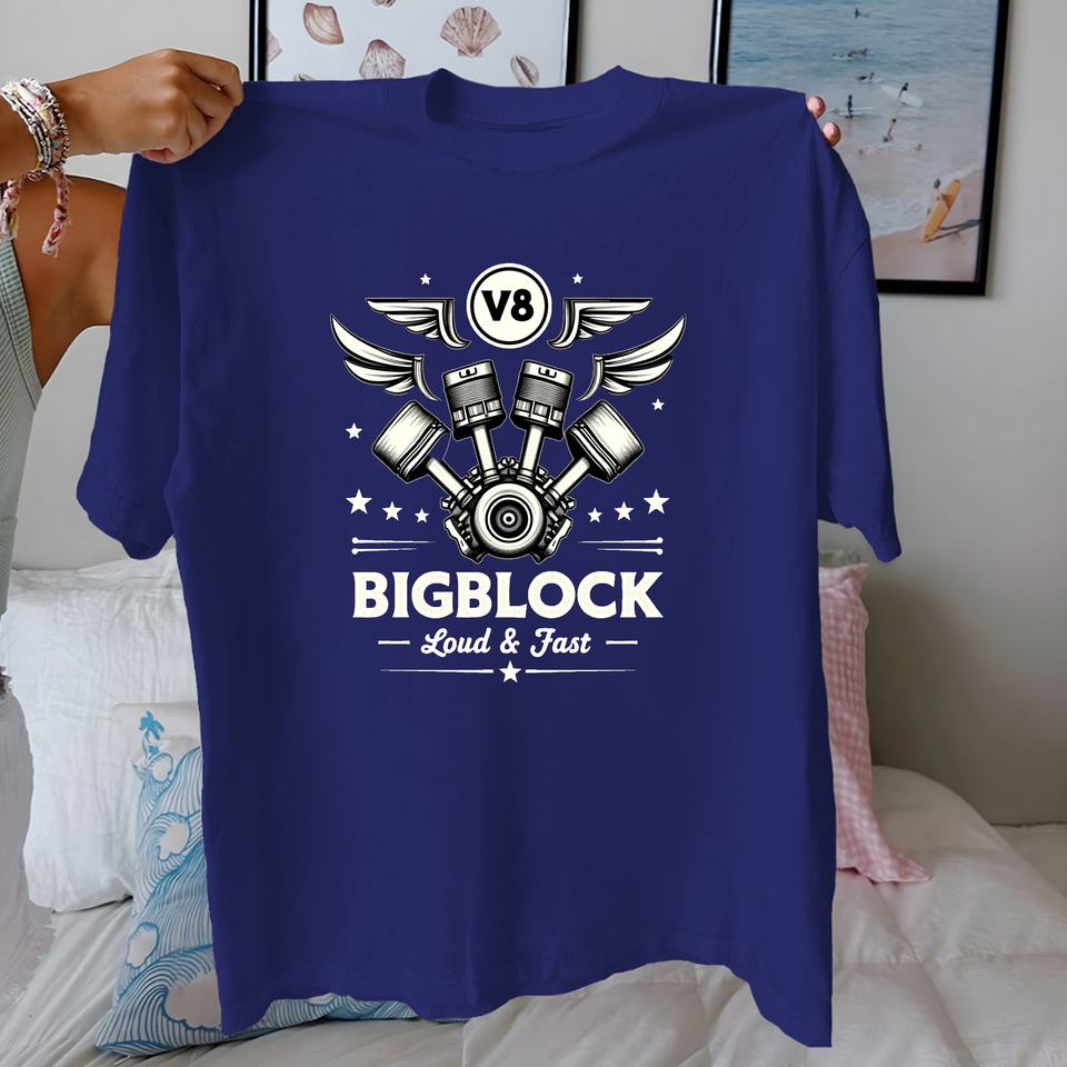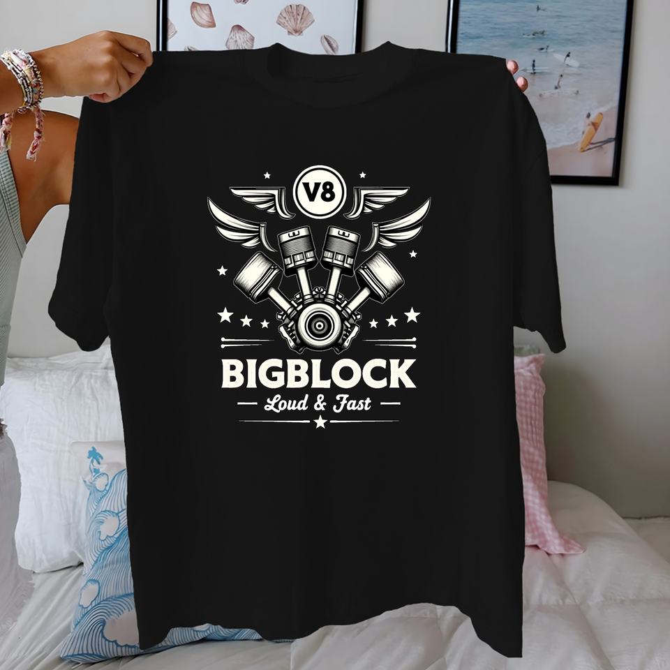 เสื้อยืดผ้าฝ้ายแท้สำหรับผู้หญิงดีไซน์เครื่องยนต์ V8ทรงพลังสวมใส่สบาย