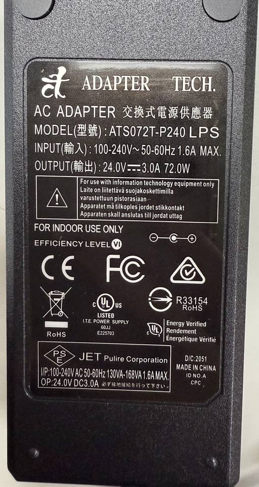 I/P 100-240V~50-60Hz 1.6A สูงสุด เอาท์พุต 24.0V --- 3.0A