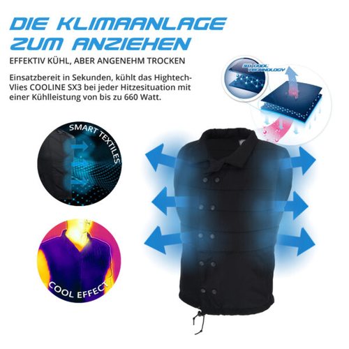 Powercool SX3 Cooling Vest Casual Summer Outer Wear Windproof Feature Custom Logo Polyester Knitted Woven Fabric Cotton Filling