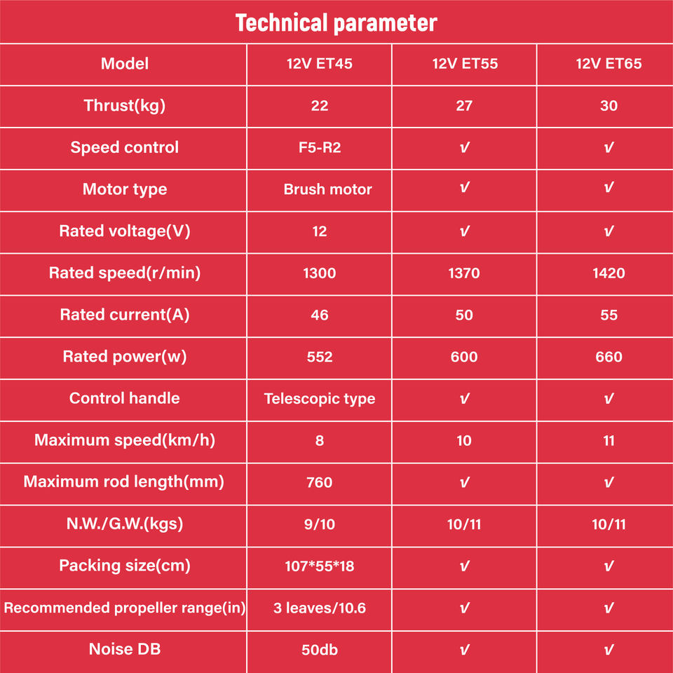 เครื่องลากจูงไฟฟ้าพลัง65LB 12V สำหรับเรือประมงเรือคายัคเรือแคนูเรือเดินทะเล