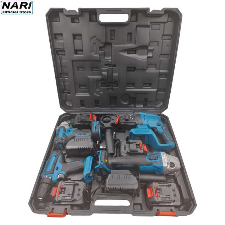 ชุดเครื่องมือไร้สาย4-in-1ประสิทธิภาพสูงประแจไฟฟ้าเครื่องบดมุมสว่านเจาะ