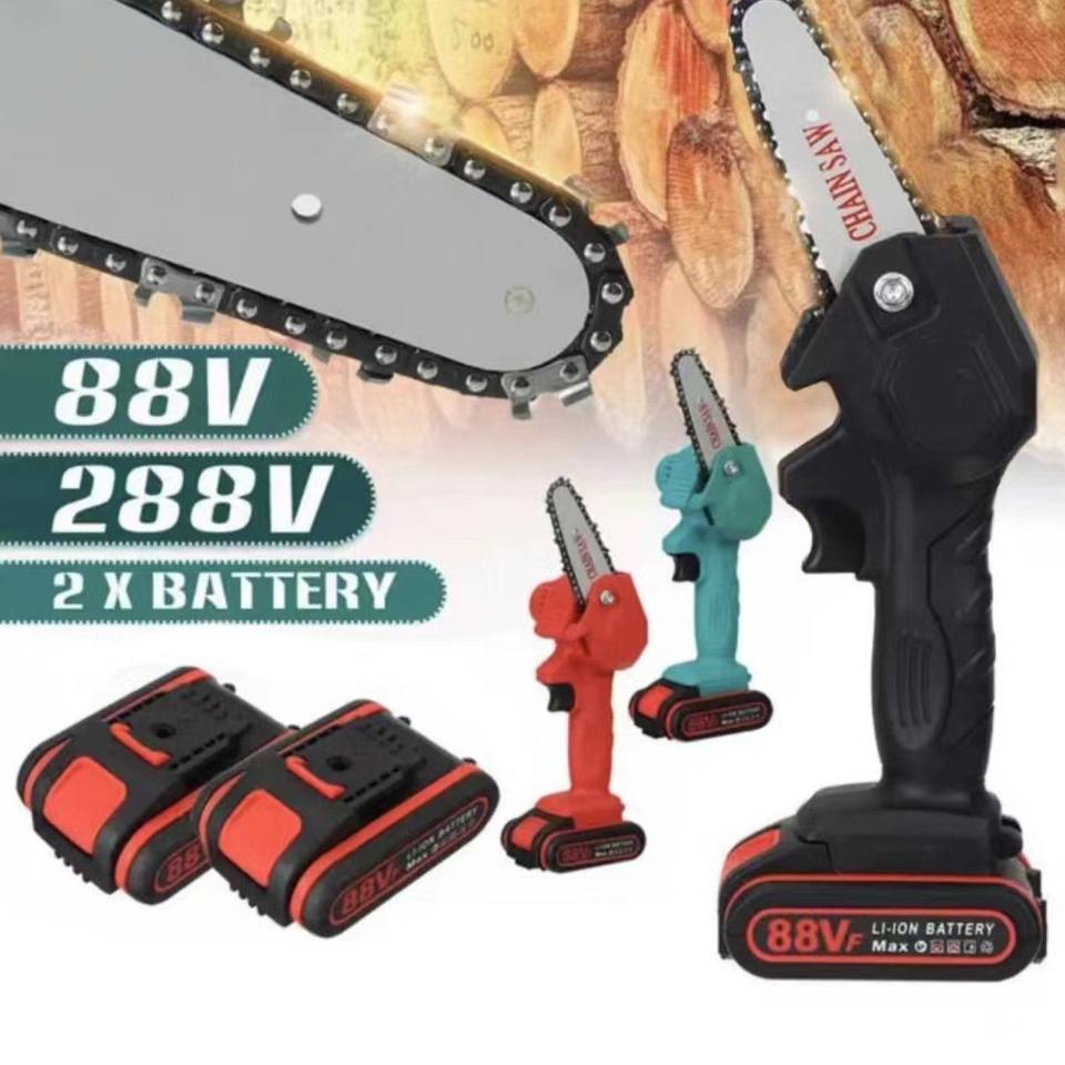 เลื่อยโซ่ไร้สาย 88V กำลังสูง แบตเตอรี่ลิเธียม เลื่อยไฟฟ้าขนาดเล็ก สำหรับงานสวน งานไม้ เครื่องมือตัดไม้พกพาสำหรับใช้งานกลางแจ้ง