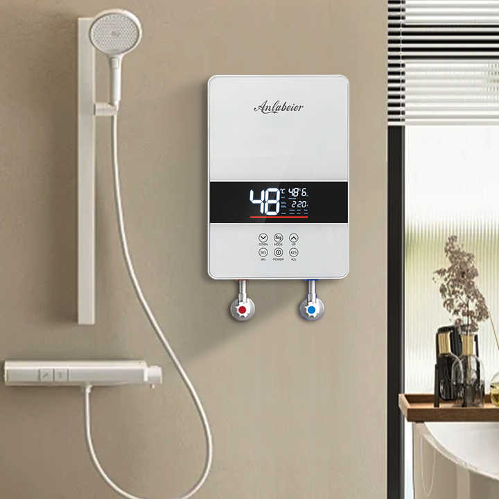 เครื่องทำน้ำอุ่นไฟฟ้าแบบไร้ถัง กำลังไฟ 220V 3-6KW หน้าจอ LED ตัวทำความร้อนสแตนเลส กันน้ำระดับ IPX4 เหมาะสำหรับโรงแรมและครัวเรือน